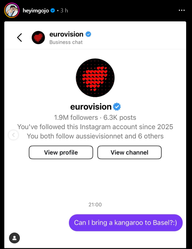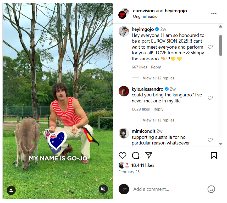 נציג אוסטרליה בתגובה מטריל את חשבון האינסטגרם הרשמי של האירוויזיון: