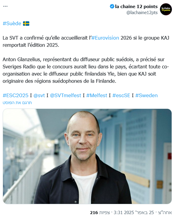 ברשות השידור השבדית כבר ציינו כי למרות הקיצוצים בתקציב הערוץ, הם מתכוונים לארח את אירוויזיון 2026 אם KAJ יזכו השנה. נציג השידור הציבורי אמר כי אין כוונה להנחות את התחרות במקרה כזה בשיתוף פעולה עם רשות השידור הפינית: