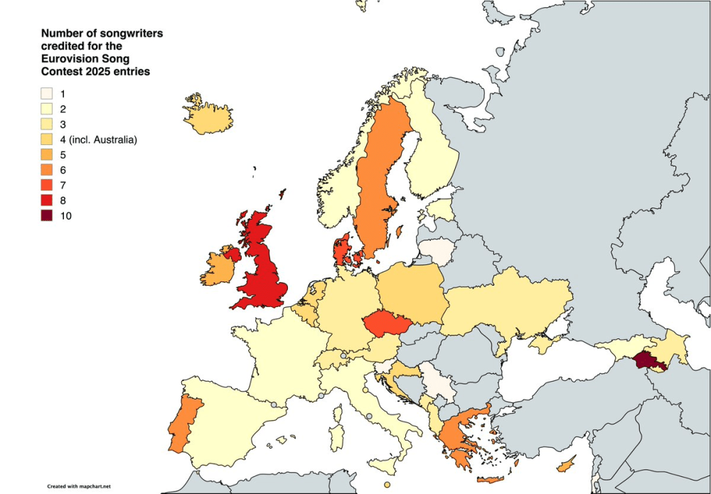 * מכמה מדינות יצאו הכי הרבה כותבי שירים השנה?