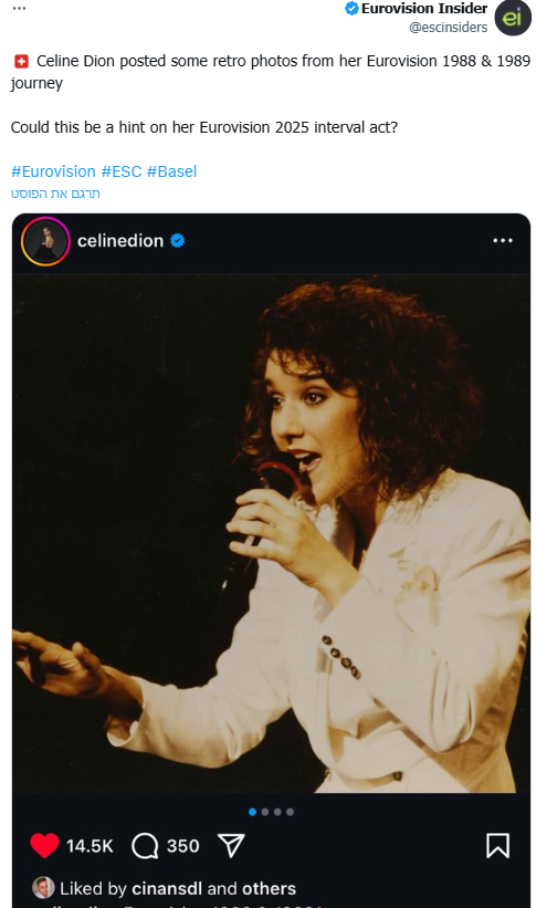 * Celine Dion פרסמה בחשבונות הסושיאל שלה תמונות מאירוויזיון 1988. האם זה אומר שהיא תופיע באירוויזיון השנה?