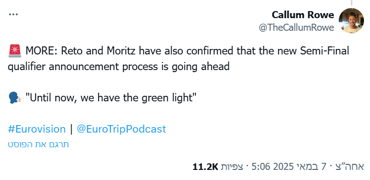 * עוד הם מסרו כי אושר אופן הצגה חדש של תוצאות חצאי הגמר, אך לא מדובר בשיטה שנוסתה בחזרות ב-2023: