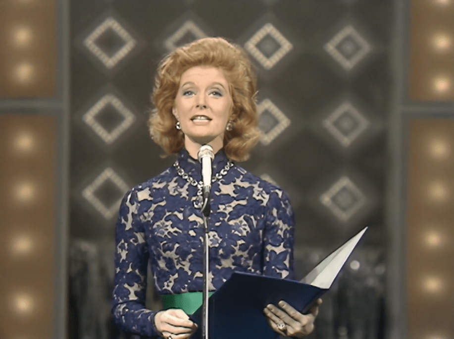 * Moira Shearer המנחה, שהייתה חסרת ניסיון בהנחיה, שוכנעה על ידי בנותיה להנחות את התחרות.