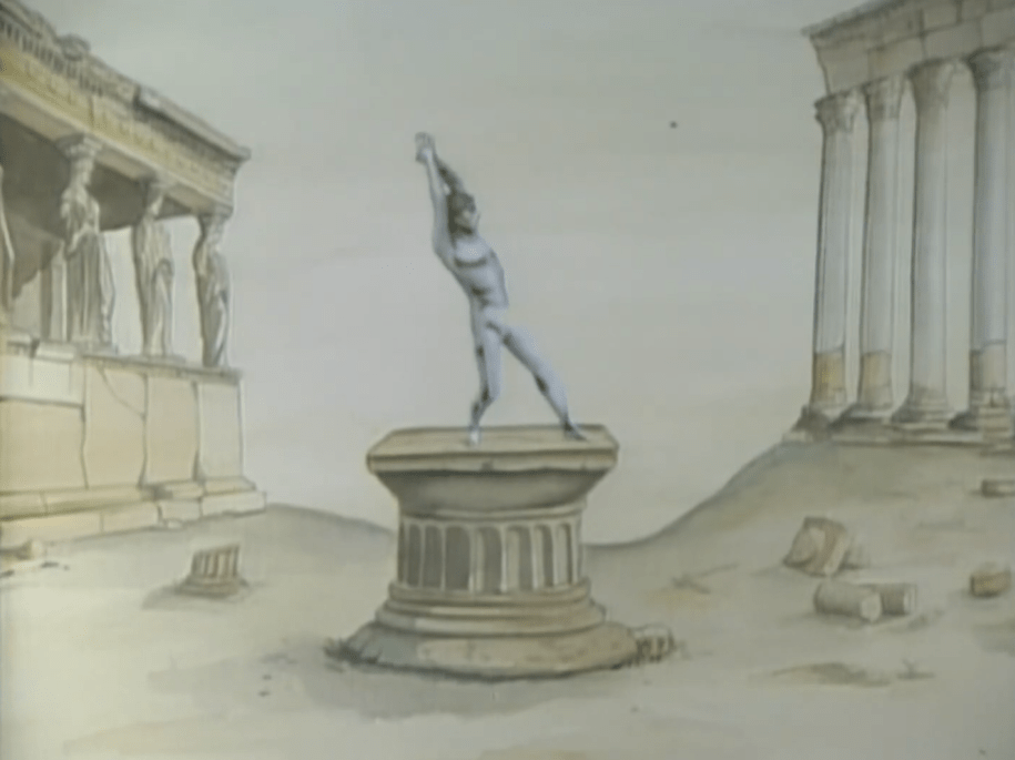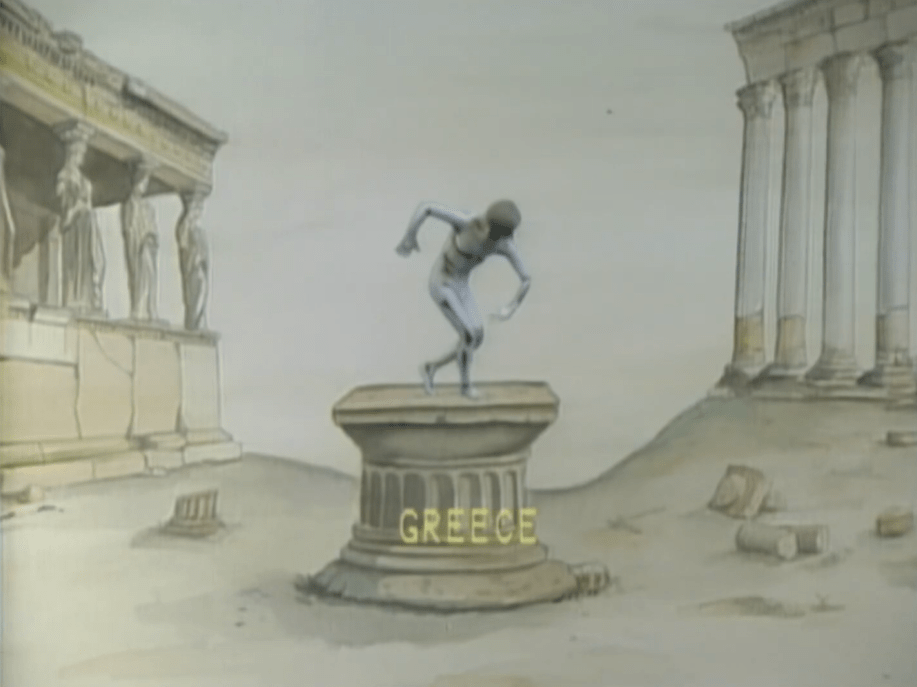 חבורת פנטומימאים מציגים אלמנטים של המדינה המארחת, על רקע ציור, שאמור להיות מתוך נופי המדינה המשתתפת או מציג אלמנטים שלה. זה מרענן וזה נחמד שחזרו לעשות גלויות, אבל זה nothing special.