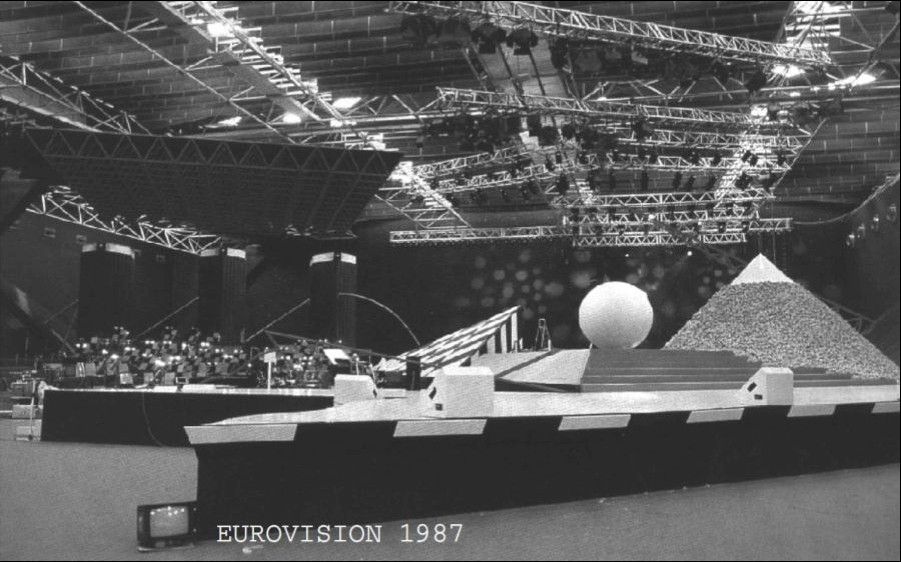 לאחר מכן, נופי בלגיה ממעוף הציפור, כיאה לתחרות באייטיז. Terry Wogan מציין את דנמרק, גרמניה ובריטניה כפייבוריטיות לזכיה עם אירלנד כבעלת סיכויים גם כן. המנחה פוסעת לבמה ופוסחת בשיר "Breathless", שיר לא רע בכלל, באווירה Fאנקית. הקטע של המנחה המזמרת התחיל ב-1985, ותודה לאל שיסתיים אחרי שנה זו. הבמה מתחילה מסורת חדשה של במות כהות, לעומת צבעי הפסטל והלבן ששלטו עד כה. הצבע השולט הוא שחור עם קרני לייזר תכולות שמקשטות את הרקע. הבמה עצמה לבנה, יש פירמידה לא ברורה ברקע ולצידה במה עילית קטנה עם גרם מדרגות, יש ברקע גם ירח עצום שעולה ויורד ויש משחקי תאורה עם הצבע המוקרן עליו. ממשיכים עם הבמה התלת מימדית והתזמורת הצמודה לבמה, כולם מעתיקים במידה מסוימת של מה שהשבדים החלו שנתיים לפני כן.