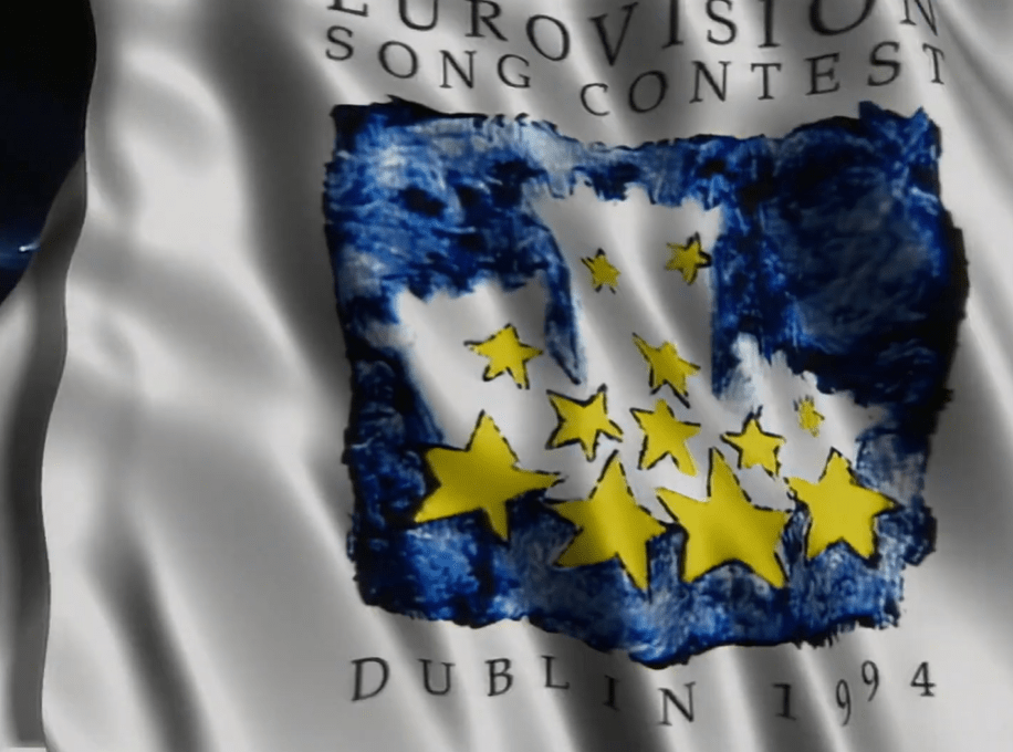 דבלין, אירלנד. כותרות הפתיחה נעות כמו על מים. סמליל התחרות שהוא טירה מכוסת כוכבים מופיע.