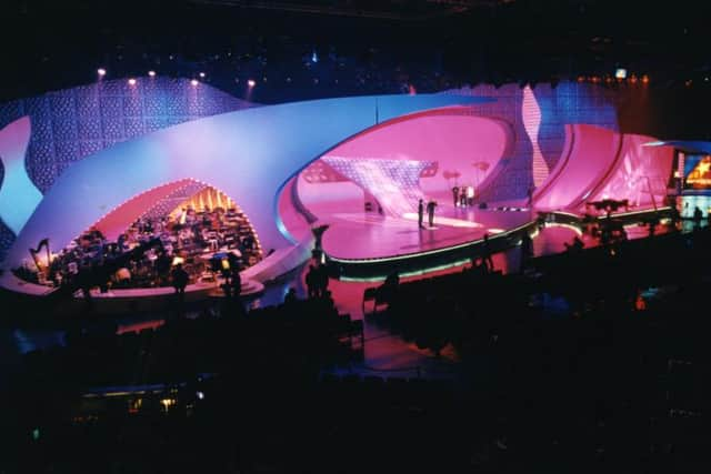 חצוצרנים מלכותיים מקדמים את פניו של אגדת האירוויזיון Terry Wogan, מנחה התחרות. הוא פותח בצרפתית וממשיך באנגלית. מציג את Katrina Leskanich, זוכת השנה שעברה, נזכר באירוח הבריטי הראשון ב-1960, ואנו צופים ב-Katie Boyle הדלוחה בוידאו מאז והיום, מנופפת לקהל משל הייתה מלכת אנגליה. Carrie Crowley, מנחת האירוויזיון הקודם מאחלת כל טוב למנחים. Wogan מזמין את Ulrika Jonsson, מנחת הערב. היא מפלרטטת עמו בשבדית, הוא עונה לה באירית. Jonsson ממשיכה את ההנחיה בצרפתית ובאנגלית, מציגה את כל הדוברים על גבי מסכים מפוצלים, שכן השנה לראשונה רוב המדינות מצביעות דרך טלווטינג. Wogan פורש לעבודתו הרגילה, שהיא הפרשנות של התחרות בעבור ה-BBC1. המנחה Jonsson מציגה בפעם האחרונה בהיסטוריה של התחרות את המנצח על התזמורת.