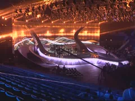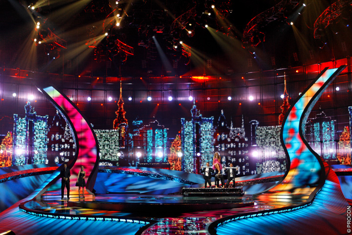 יצירת הסמליל מלוווה באינסטרומנטלי כינורות של פיזמון השיר הזוכה מהשנה שעברה. ה-Te Deum מושר על ידי מקהלה, המוצגת בסרטון שחור ולבן. נכנסים לאולם. הבמה לא שונה בהרבה מזו של השנה שעברה. מדובר בבמה קטנה ועגולה, כאשר משני צידיה מלמעלה יורדים שני שובלים האמורים לדמות שני נהרות. יש מסלול ממרכז הבמה לכיוון הקהל, שגם הוא נראה כמו נהר. בניגוד לתחרויות עבר, המסלול לא נכנס לאזור הקהל ויש הפרדה ברורה בין האמנים לקהל. מסכי טלוויזיה ו-LCD בשימוש נרחב על הבמה וברקע וידאוארט, המשתנה ממדינה למדינה.