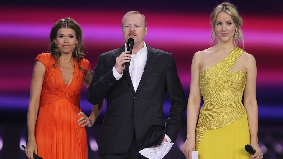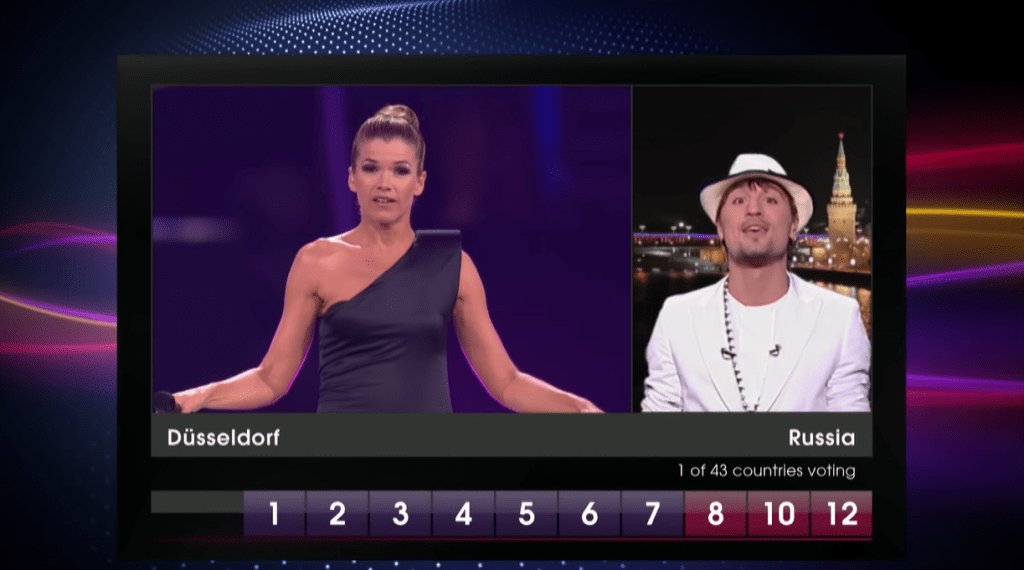 אחרי 5 שירים, המנחים Stefan Raab ו-Anke Engelke בקבלת הפנים של האמנים המשתתפים מנסים ללמד את המשתתפים שיר עם גרמני. זה חמוד מאד ומזכיר לי כמה Alexey Vorobyov הרוסי היה חתיך.