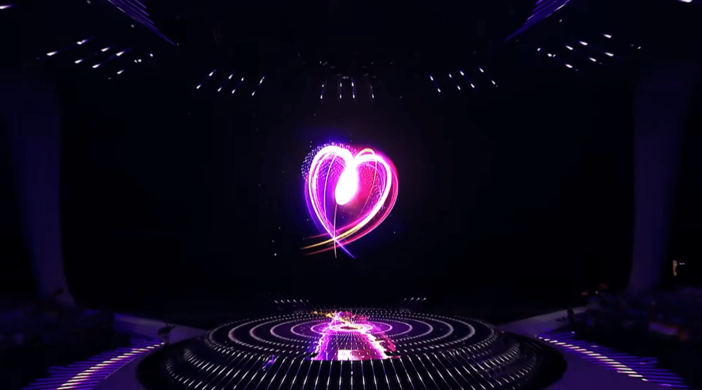 סוג של מפץ של צבעים מתפוצץ ויוצר את הסיסמה "Feel Your Heart Beat" הצבעים השולטים הסגול, לבן, צהוב ואדום, וצליל פעימות הלב פותח את התחרות כאשר על המסך לב ענק.