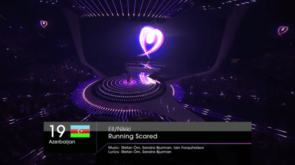 אזרבייג'ן – ויזואלית זה הרגע החזק של הערב, ורק עכשיו אני מבין את זה כשאני רואה את זה. השיר עצמו הוא בלדת פופ מודרנית שמזכירה לי משום מה את "No one" של Alicia Keys. הנציגים, Ell ו-Nikki, לבושים בלבן ולהם ארבע מלוות שבדיות מצוינות ובימוי והעמדה שבדיים מנצחים ומדויקים. ווקלית זה לא מבריק, אבל האווירה עוברת. הבמה מופצצת באור ובפזמון האחרון גשם של זיקוקים שוטף את הבמה.