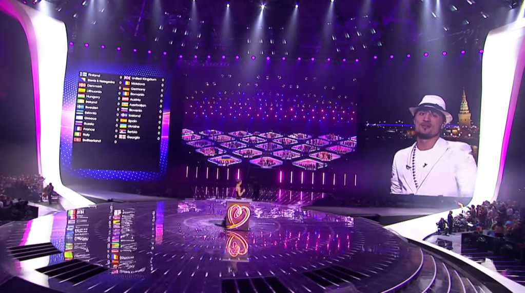 לוח הניקוד זהה כמעט לזה מהשנה שעברה, רק הצבעים מעט שונים. לוח הניקוד עצמו בשחור, המדינות שמקבלות ניקוד נצבעות באפור ודגליהן מוסתר בריבוע ניקוד סגול. שמות המדינות בלבן. מאחורי לוח הניקוד רקע כחול כהה, כאשר צבעי הניאון של הלב שראינו לאורך כל התחרות מתוחים אופקית.
